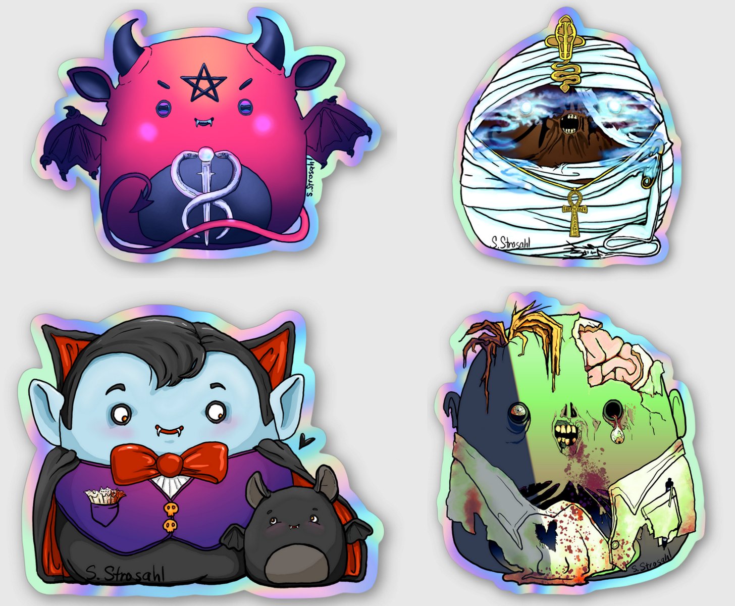 | Sticker 1 Choice | A Little Batty, Blue Heron, Body Friends, Bud the Wiser, Flowerpot Grenade, In This Together, Monster Baphomet, Monster Dracula, Monster Mummy, Monster Zombie, Notice Me, Senpai!, Peach Cage, Prickly Pair, Rainbow Mushroom, Yellow Squishbear, Surprise Me! |