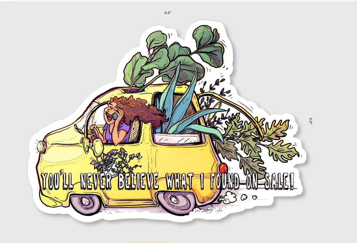 We’ve all done things we aren’t proud of at a good plant sale. Buy two get one free! A three pack is only $8. A 3.2 w x 2.3 h inch contour sticker.